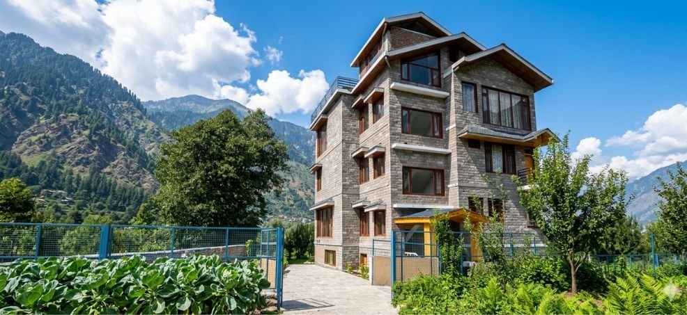 Located in the picturesque Mansari village on Naggar Road, Saanjh Retreat is the best resort in Manali for travelers seeking an authentic Himalayan experience. The resort sits amidst stunning snow-capped valleys and lush apple orchards, creating a serene atmosphere that feels worlds away from the crowded tourist areas of Manali.